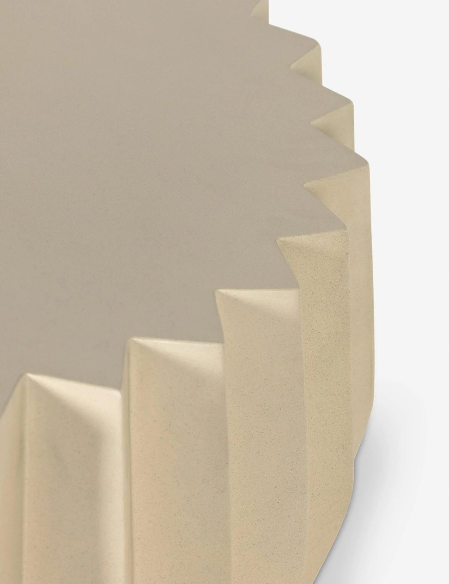 Add some sculptural character to your outdoor lounge with this concrete coffee table. A round coffee table is a perfect anchor for casual entertaining, and the fluted silhouette of this design brings an industrial contrast to fresh air surroundings.