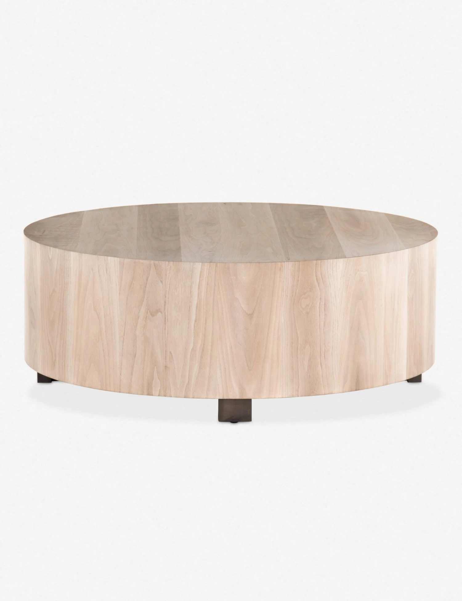 A naturally stunning centerpiece for your living space, this round coffee table features a paneled wood design, with woodgrain detailing throughout. The sturdy living room table rests on a low base, making it the perfect surface for coffee table books, indoor plants, and tabletop sculptures.