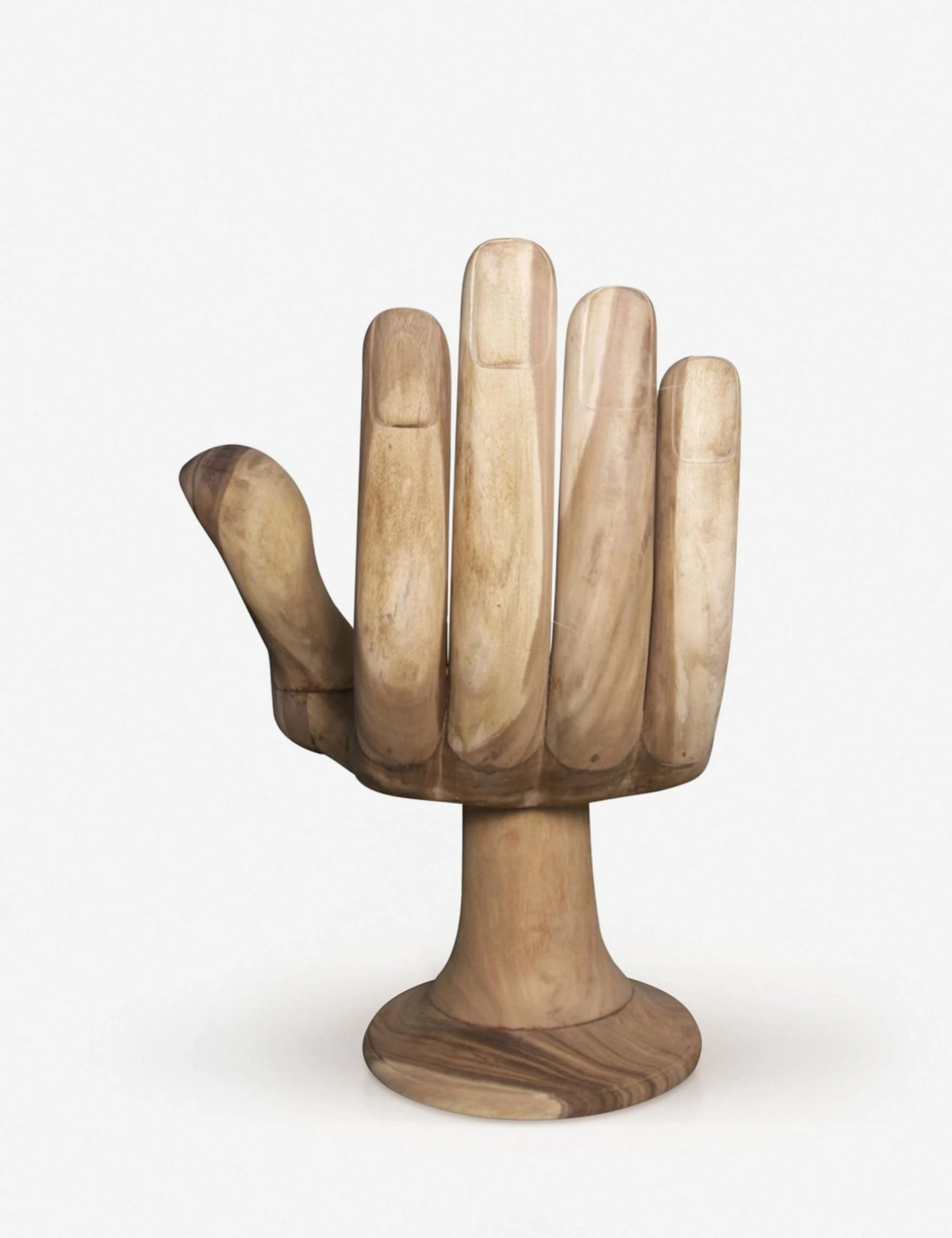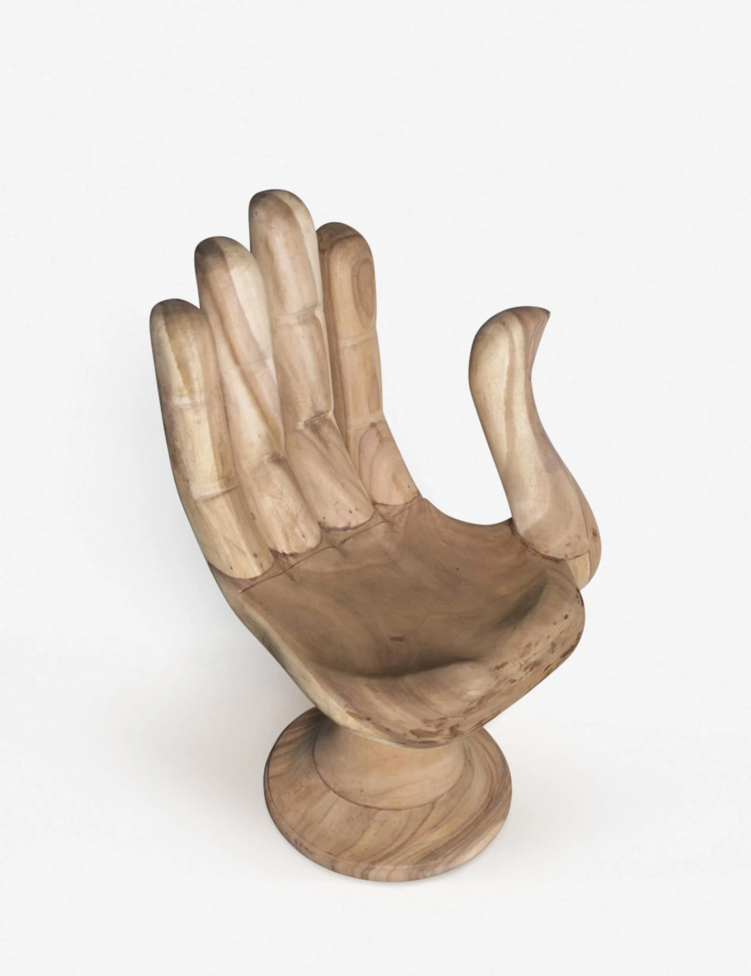 Our cheeky hand-shaped Palm accent chair gives your at-home aesthetic an extra boost with a modern yet whimsical shape presented in natural teak wood. Style this occasional chair in your living room with a sheepskin throw to add a cozy finishing touch.