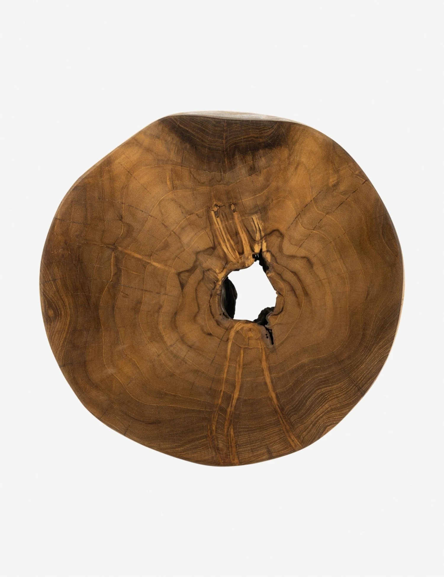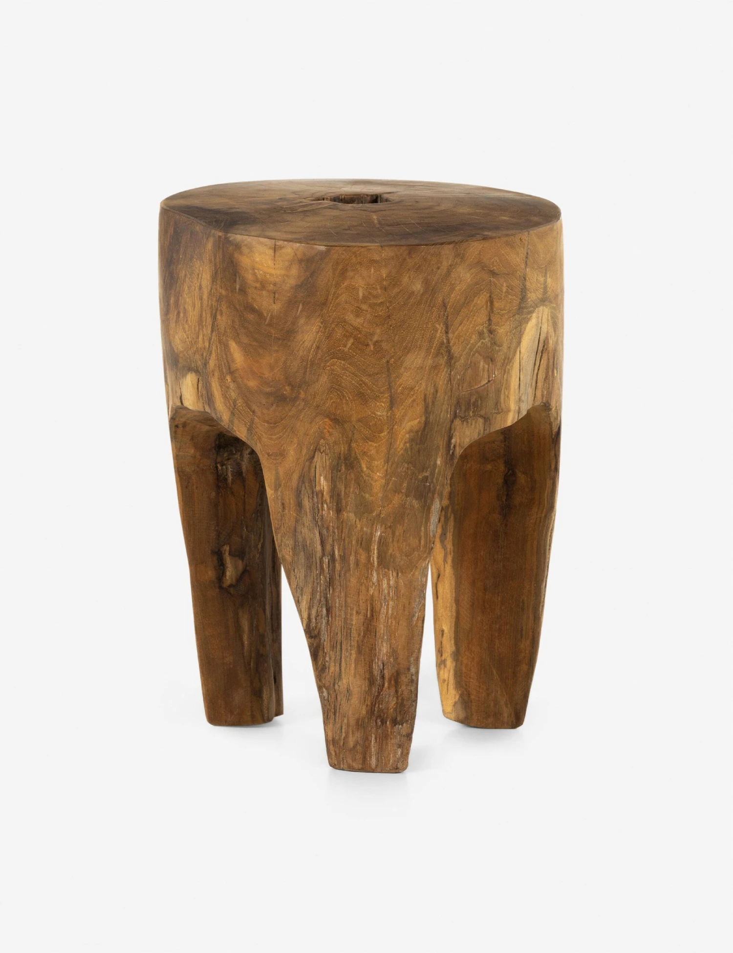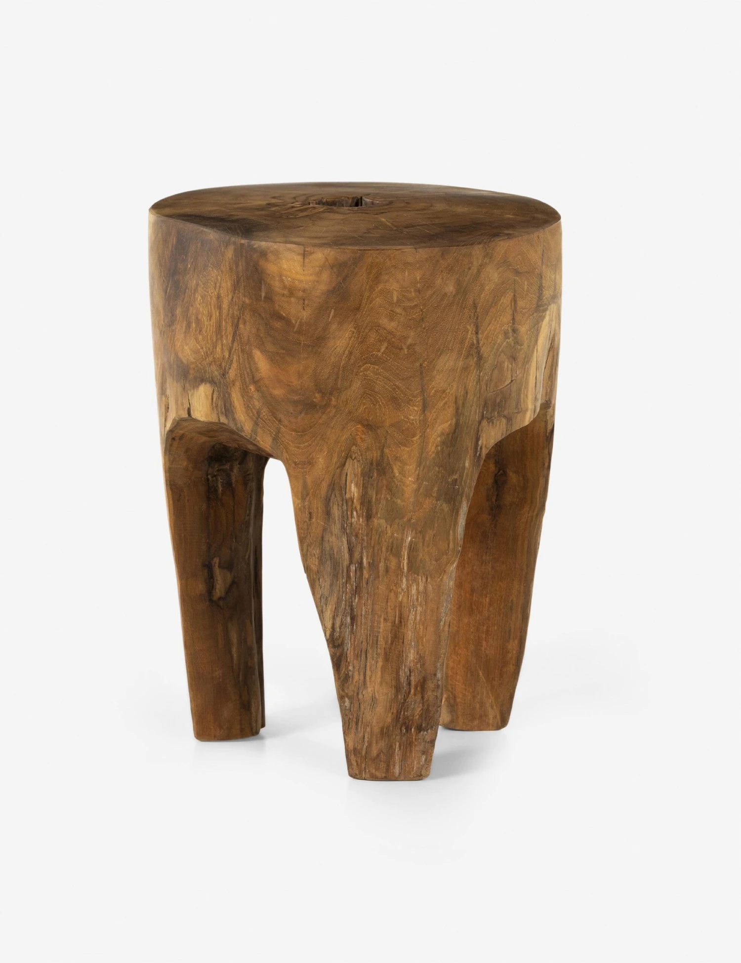 Rough-hewn teak root takes a sculptural turn in this rustic side table. Each piece features a distinctive grain with unique knotting and holes to offer a raw organic character, whether as an end table or pedestal for decor. The resilient qualities of the wood let you style this accent indoors or out—where the sun will color it with a beautiful patina.