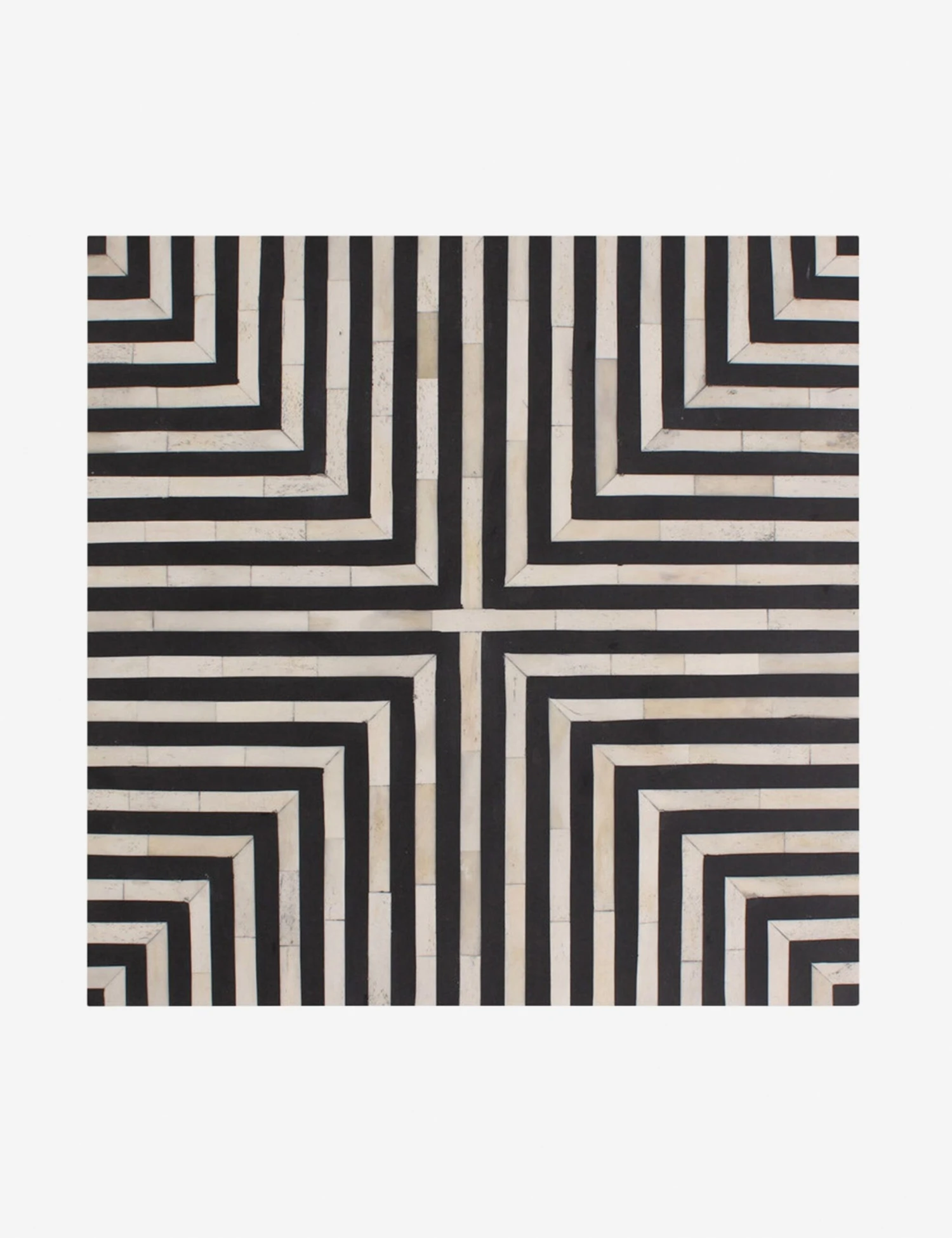 A sleek cubic form comes alive with a bold deco veneer in this side table. The contrast of the vibrant geometry creates striking impact in an eye-catching design. Pair this black and white end table with our Trendyl Coffee Table or style for a unique accent in an eclectic space.