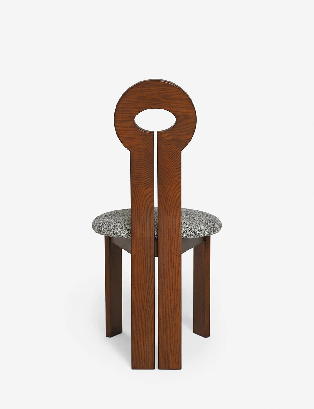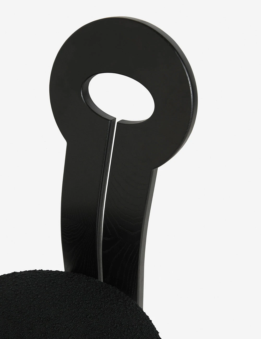 This chic dining chair pairs a sculptural frame with minimalist design. The front legs angle towards an eyelet-style back to create a refined dining or kitchen chair, and its upholstered seat lends it a touch of everyday elegance. This piece is from our exclusive Sarah Sherman Samuel collaboration and features all the trademarks of her warm, edited style.